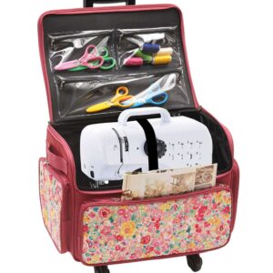 Stay Organized and Stylish with the 13″ x 18″ Pink Floral Rolling Sewing Storage Tote by Top Notch