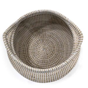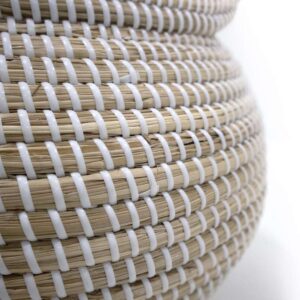 Each basket is carefully made by hand, by crafts men and women in Vietnam, using traditional tools and techniques. In a lovely soft, natural finish, these baskets are made from seagrass and woven with white plastic string. The basket with simple pattern that you can put it in anywhere in your home for storage and decoration as well.