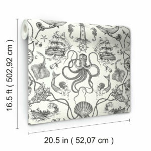 An amusing addition to bath or beach house, Deep Sea Toile Peel and Stick Wallpaper from RoomMates has it all – from seahorses to mermaids, ships to lighthouses, and much more taken from Davy Jones’ locker. Simple and affordable, give walls, decor and accessories a refreshing transformation with very little effort. Great for DIY projects, temporary home decorating and more, Peel and Stick Wallpaper transforms any space or decor in minutes. Simply peel from the backing and stick to any clean flat surface. When it’s time to redecorate, remove in full strips without damaging painted walls or leaving any sticky residue behind. Bring the glories of nature into your home with Peel and Stick Wallpaper from RoomMates. 20.5 inches x 16.5 feet 20.5 Repeat. Straight Match. 28.18 square feet
