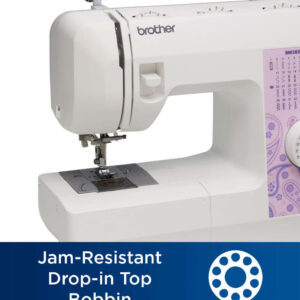 - Convenience Features: Includes a jam-resistant, quick-set drop-in top bobbin and one step-buttonhole.