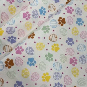 Get Ready for Easter with this Adorable Paw Prints & Eggs on White Fabric!