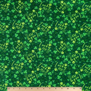 Green Lucky Pup Paw Prints St. Patrick’s Day Cotton Fabric