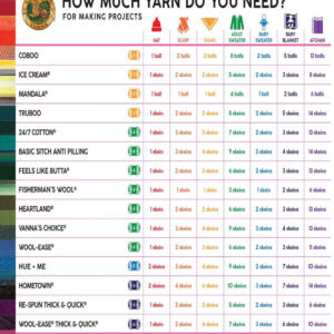 6 oz ./170g (106 yd/97 m); Prints, Stripes &Metallics :5 oz ./140g (87 yd/80 mLI) - Knit Gauge: 4 in = 9 stitches on size 13 needles