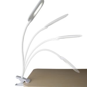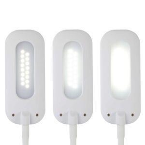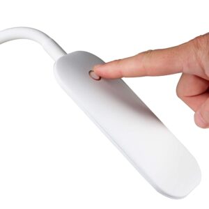 Bring great lighting into small spaces with the OttLite Flexible Soft Touch LED Clip Lamp. with the spring-loaded clip, attach securely to tables, bookshelves, and more. The super flexible neck adjusts the height from 4 to 18.5 inches to direct the clear, crisp natural daylight ClearSun LED illumination right where you need it. Proprietary ClearSun LEDs reduce glare and eyestrain for hours of focused, productive time. This OttLite lamp features a soft-touch texture on rubberized neck and shade. Easily adjust the three brightness settings with touch activated controls.