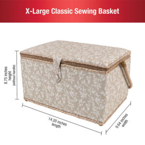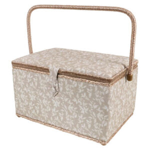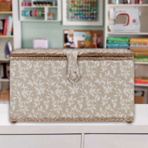 SINGER 15″ x 10″ Tan Vine Print Sewing Basket