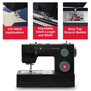 Sewing sheer or lightweight fabrics? No problem! The easily adjustable presser foot pressure also makes sewing very lightweight fabrics a breeze.In addition to strength, speed, and enhanced power, the Heavy Duty 4432 sewing machine brings creative capabilities! With over a hundred Stitch Applications, you will have the right stitch for any technique. Plus, enjoy many features for easy sewing like the top drop-in bobbin, stainless steel bed plate, built-in needle threader, and more! Whether you’re designing original garments, upcycling jeans, or transforming your home with custom home decor, ensure a great start on your sewing journey with the SINGER Heavy Duty 4432!