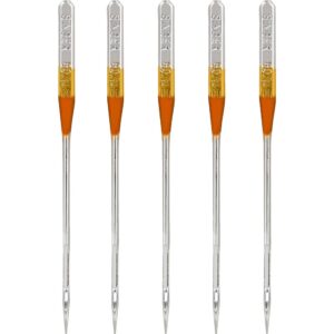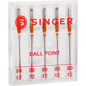 - This pack of 5 SINGER ball point sewing machine needles is the perfect addition to an existing collection of sewing machine needles. The point is designed to slide between fibers of knit fabrics smoothly, without creating holes or runs in knit fabrics. Needles are color coded and sized 80/12, best for use on lightweight fabrics. The SINGER sewing machine needles can be used on SINGER, Brother, Kenmore, Bernina, Janome, Juki and other quality household domestic sewing machines. Domestic machines needles are not compatible with industry sewing machines.