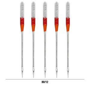- Set of 5 regular point universal sewing machine needles, size 80/12
