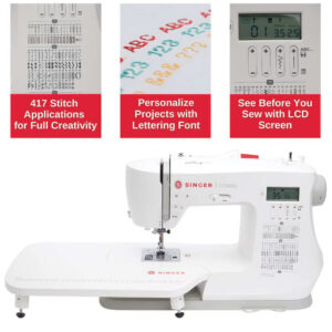 The SINGER C7290Q Computerized Sewing Machine is a sewing and quilting powerhouse! Designed for sewists of any level, enjoy easy-to-use, touch-button features that bring professional sewing results in less time. With over 400 Stitch Applications, you’ll always have the right stitch for any fabric. Love personalizing projects? The SINGER C7290Q includes a lettering font to personalize projects with custom words, phrases or monograms. A package of specially chosen accessories will deliver a sewing and quilting experience like no other! Along with the removable extension table for larger projects like quilts, 12 hand-picked sewing and quilting presser feet are included with your machine. Now it’s easier than ever to apply the most-loved sewing and quilting techniques to your projects. The SINGER C7290Q will make your creative dreams come to life with ease!
