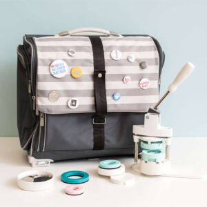 Easily create buttons, magnets, keychains, and so much more with the Button Press by We R Memory Keepers! This unique press cuts your favorite papers to the correct size for both small and large projects. The Button Press features an easy-to-press handle, and can be used to create buttons out of paper, cardstock, and fabric. This package includes one Button Press, a medium top and base insert, a medium die, top and base die platform, metal shells, mylar, and pin packs (enough supplies to make 5 buttons).